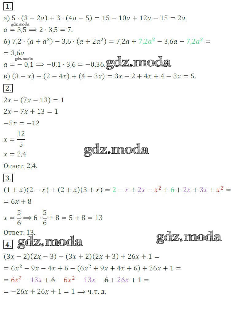ОТВЕТ на задание № 1 Дидактические материалы по Алгебре 7 класс Потапов МГУ - школе