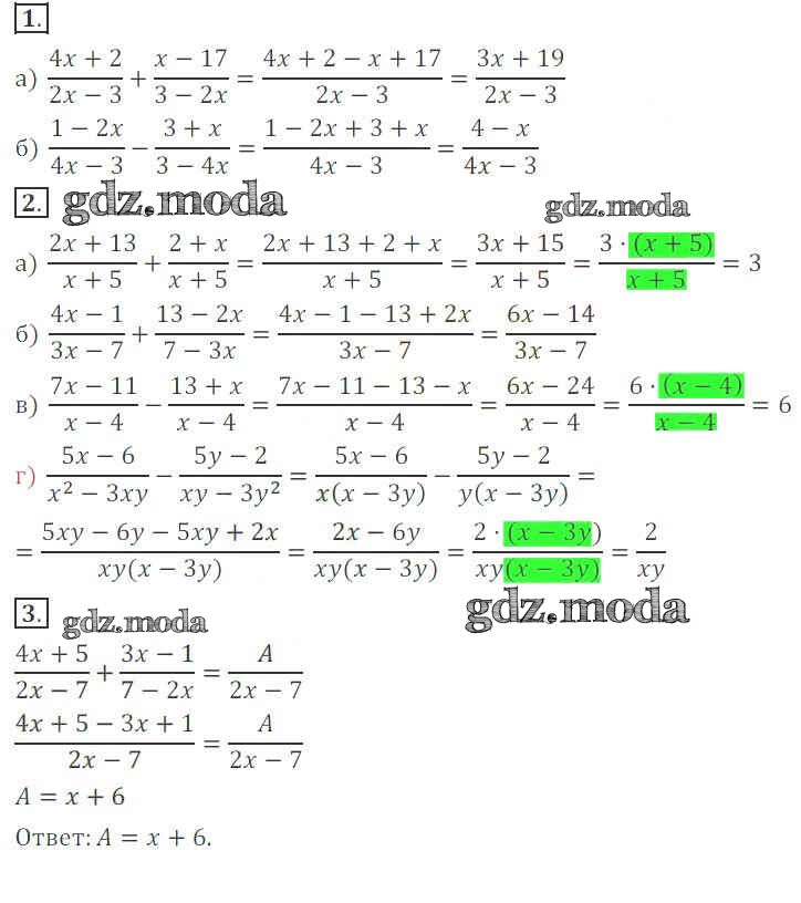 ОТВЕТ на задание № 3 Дидактические материалы по Алгебре 7 класс Потапов МГУ - школе