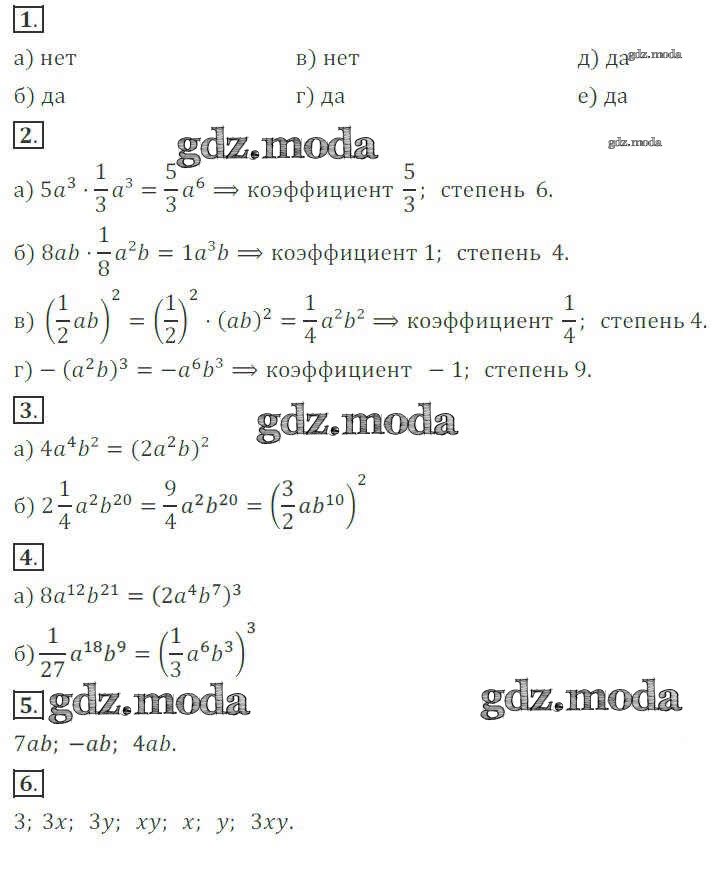 ГДЗ решение к заданию № 1 Алгебра 7 класс дидактические материалы Потапов М.К. Просвещение 2017 ФГОС бесплатно на гдз.мода!