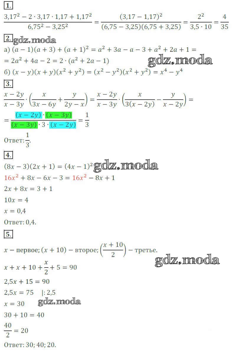 ОТВЕТ на задание № 1 Дидактические материалы по Алгебре 7 класс Потапов МГУ - школе