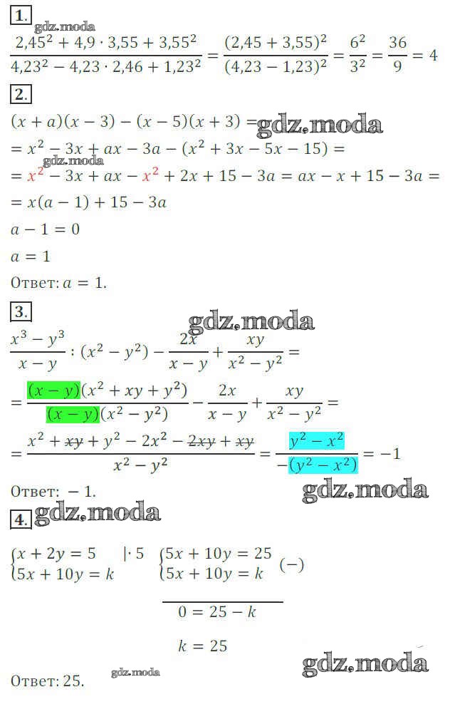 ОТВЕТ на задание № 4 Дидактические материалы по Алгебре 7 класс Потапов МГУ - школе