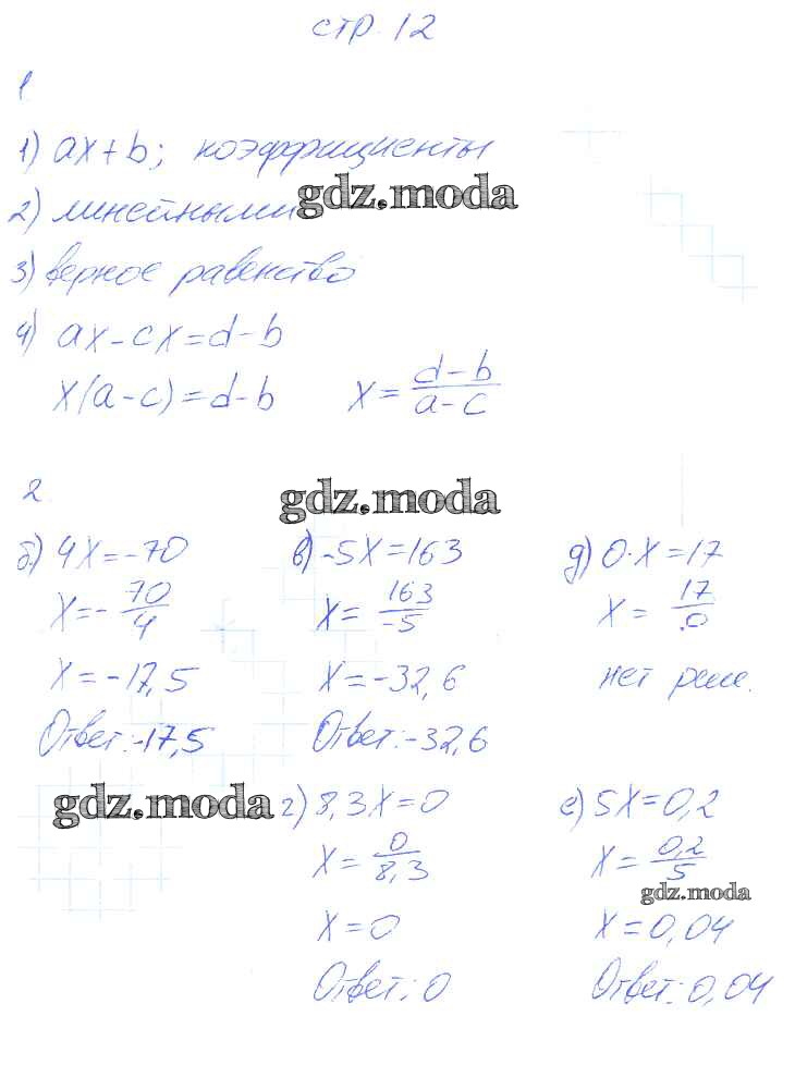 ОТВЕТ на задание № 12 Рабочая тетрадь по Алгебре 7 класс Ключникова УМК