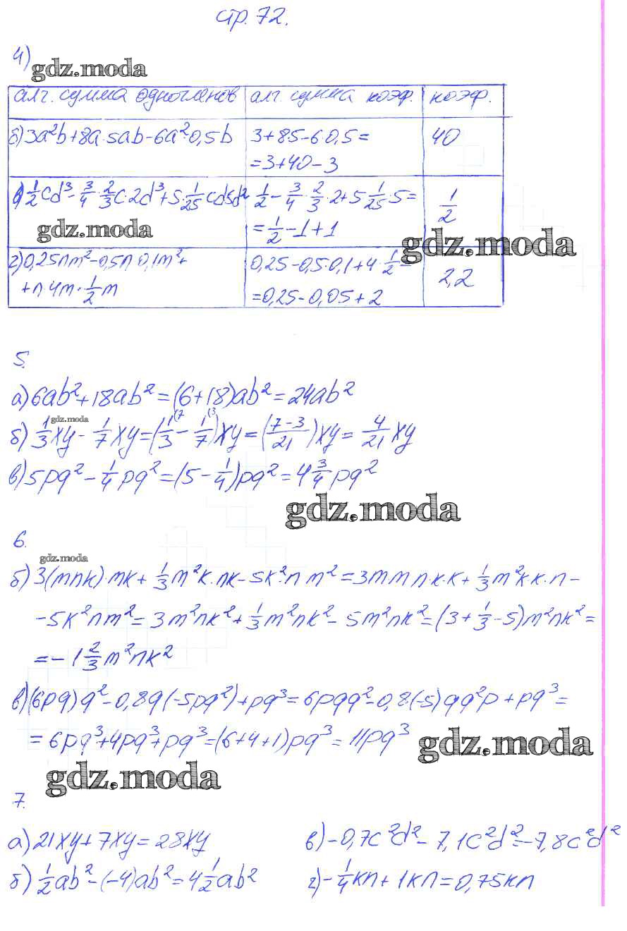 ГДЗ решение к заданию № 72 Алгебра 7 класс рабочая тетрадь Ключникова Е.М. Экзамен 2013 ФГОС бесплатно на гдз.мода!