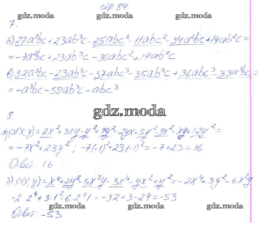 ОТВЕТ на задание № 84 Рабочая тетрадь по Алгебре 7 класс Ключникова УМК