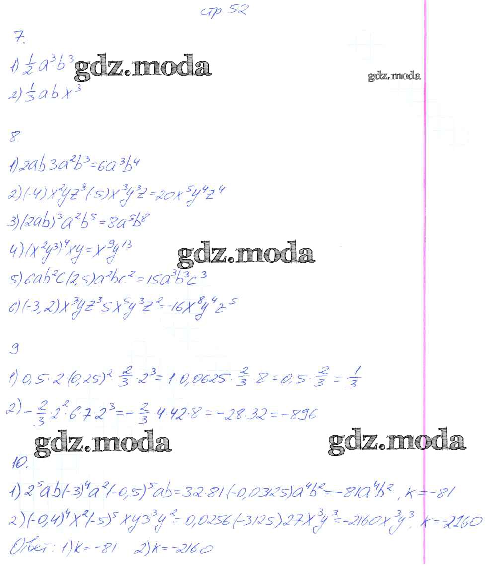 ГДЗ решение к заданию № 52 Алгебра 7 класс рабочая тетрадь Колягин Ю.М. Просвещение 2017 Часть 1, Часть 2 ФГОС бесплатно на гдз.мода!