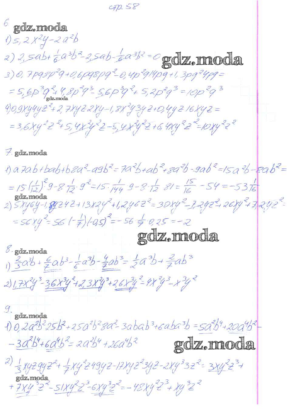 ГДЗ решение к заданию № 58 Алгебра 7 класс рабочая тетрадь Колягин Ю.М. Просвещение 2017 Часть 1, Часть 2 ФГОС бесплатно на гдз.мода!