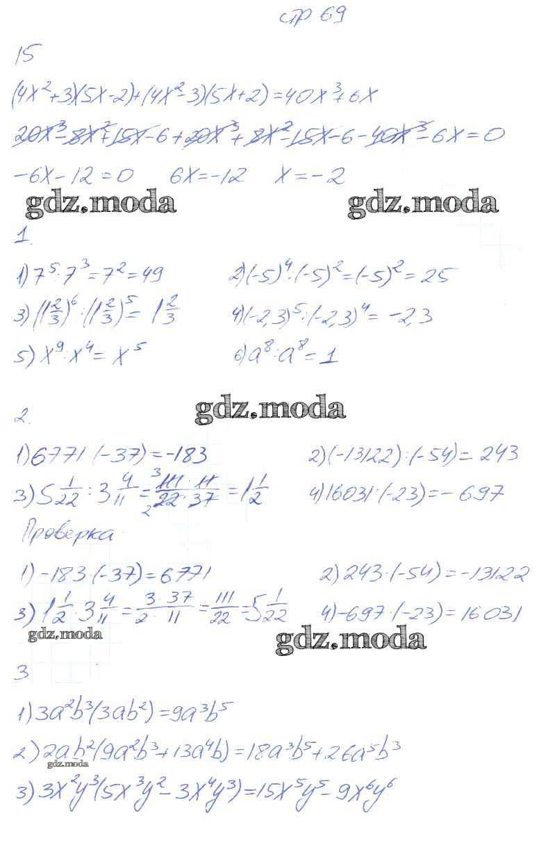 ГДЗ решение к заданию № 69 Алгебра 7 класс рабочая тетрадь Колягин Ю.М. Просвещение 2017 Часть 1, Часть 2 ФГОС бесплатно на гдз.мода!