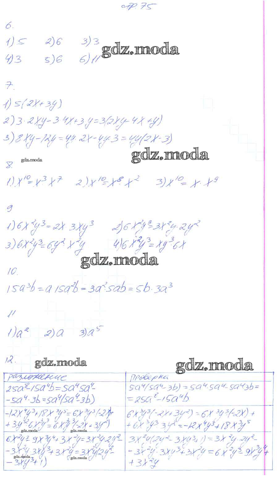 ГДЗ решение к заданию № 75 Алгебра 7 класс рабочая тетрадь Колягин Ю.М. Просвещение 2017 Часть 1, Часть 2 ФГОС бесплатно на гдз.мода!