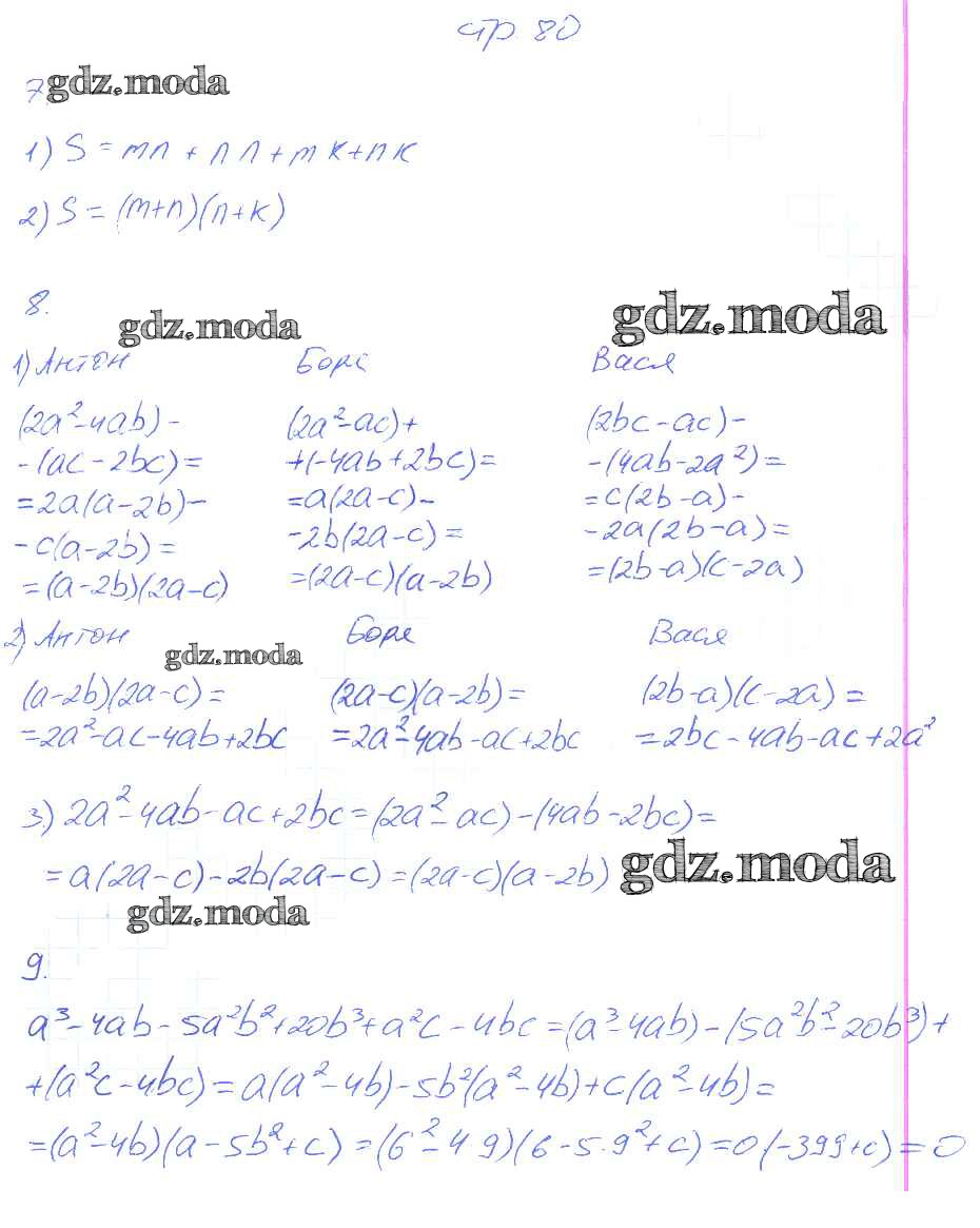 ОТВЕТ на задание № 80 Рабочая тетрадь по Алгебре 7 класс Колягин УМК