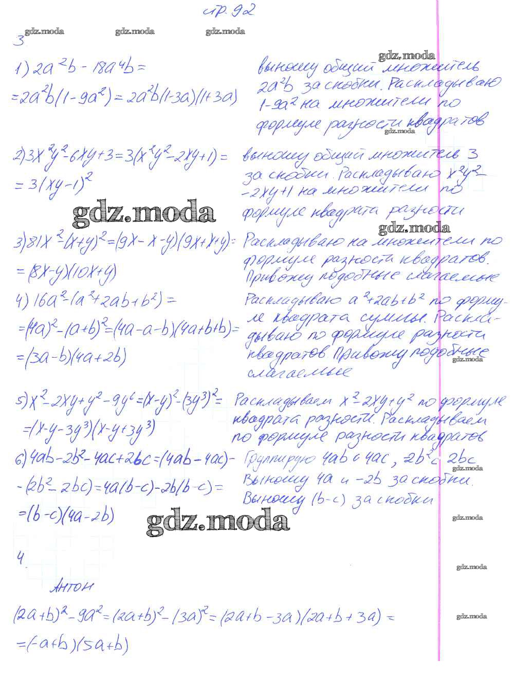 ГДЗ решение к заданию № 92 Алгебра 7 класс рабочая тетрадь Колягин Ю.М. Просвещение 2017 Часть 1, Часть 2 ФГОС бесплатно на гдз.мода!
