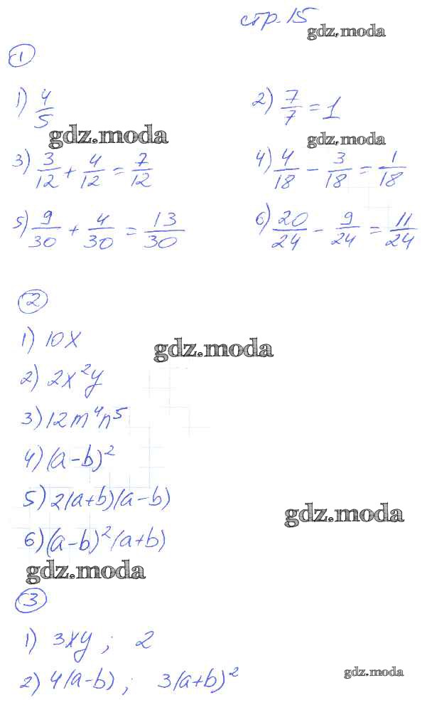 ГДЗ решение к заданию № 15 Алгебра 7 класс рабочая тетрадь Колягин Ю.М. Просвещение 2017 Часть 1, Часть 2 ФГОС бесплатно на гдз.мода!