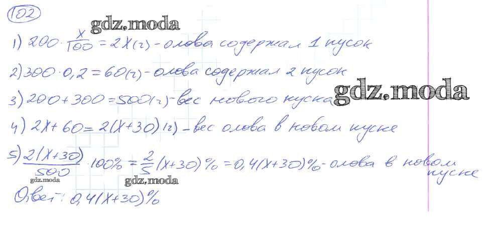 ОТВЕТ на задание № 102 Рабочая тетрадь по Алгебре 7 класс Потапов МГУ - школе