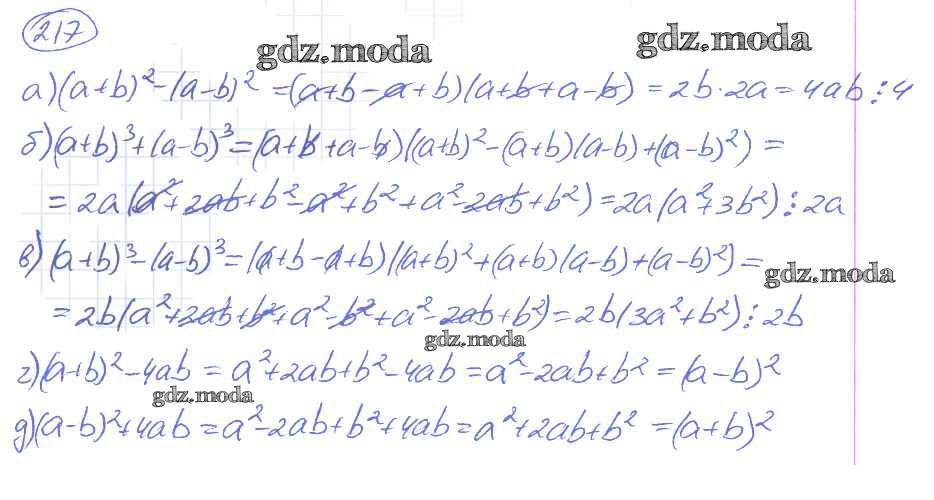 ГДЗ решение к заданию № 217 Алгебра 7 класс рабочая тетрадь Потапов М.К. Просвещение 2018 Часть 1, Часть 2 ФГОС бесплатно на гдз.мода!
