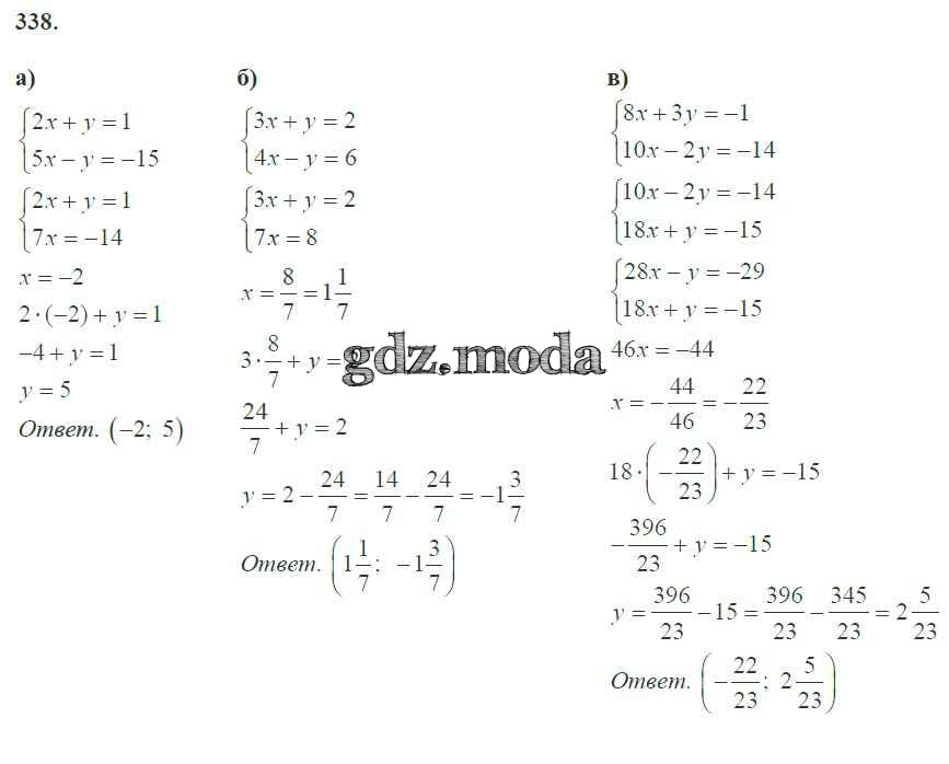ОТВЕТ на задание № 338 Рабочая тетрадь по Алгебре 7 класс Потапов МГУ - школе
