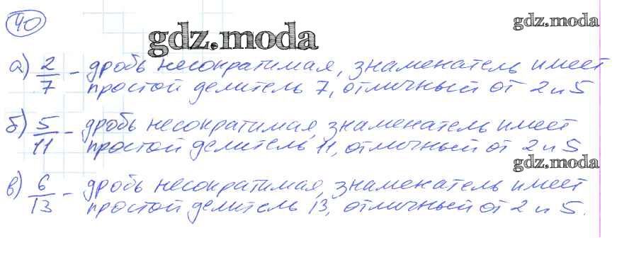 ОТВЕТ на задание № 40 Рабочая тетрадь по Алгебре 7 класс Потапов МГУ - школе