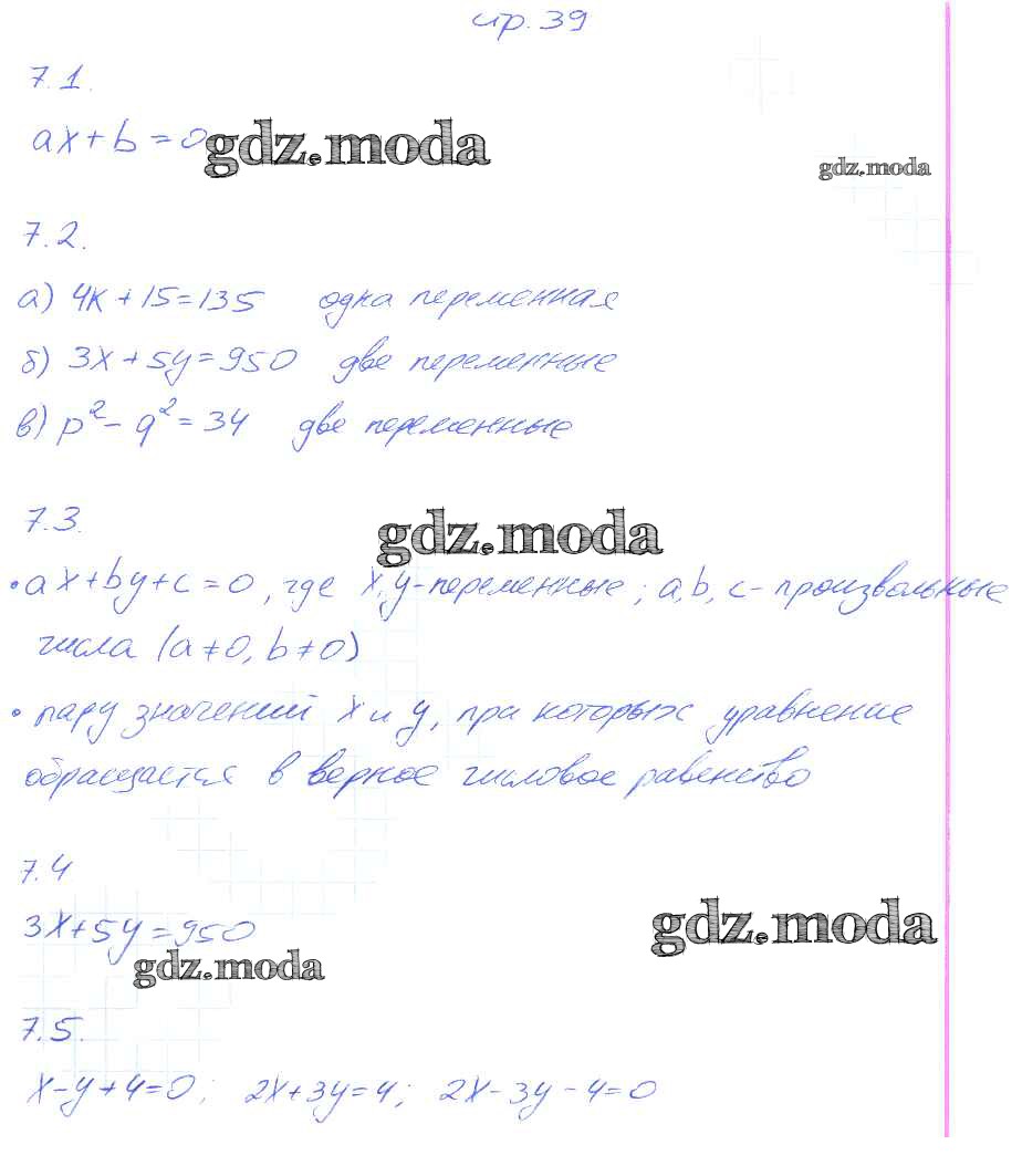 ГДЗ решение к заданию № 39 Алгебра 7 класс рабочая тетрадь Зубарева И.И. Мнемозина 2019 Часть 1, Часть 2 ФГОС бесплатно на гдз.мода!