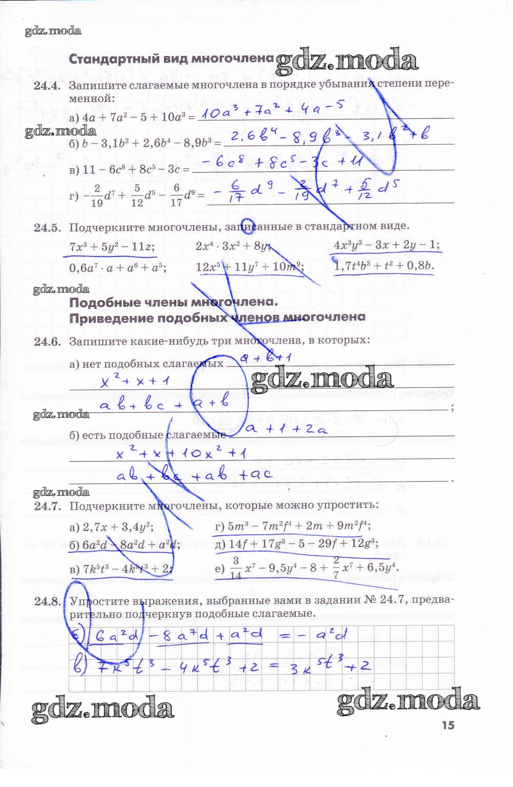 ГДЗ решение к заданию № 15 Алгебра 7 класс рабочая тетрадь Зубарева И.И. Мнемозина 2019 Часть 1, Часть 2 ФГОС бесплатно на гдз.мода!