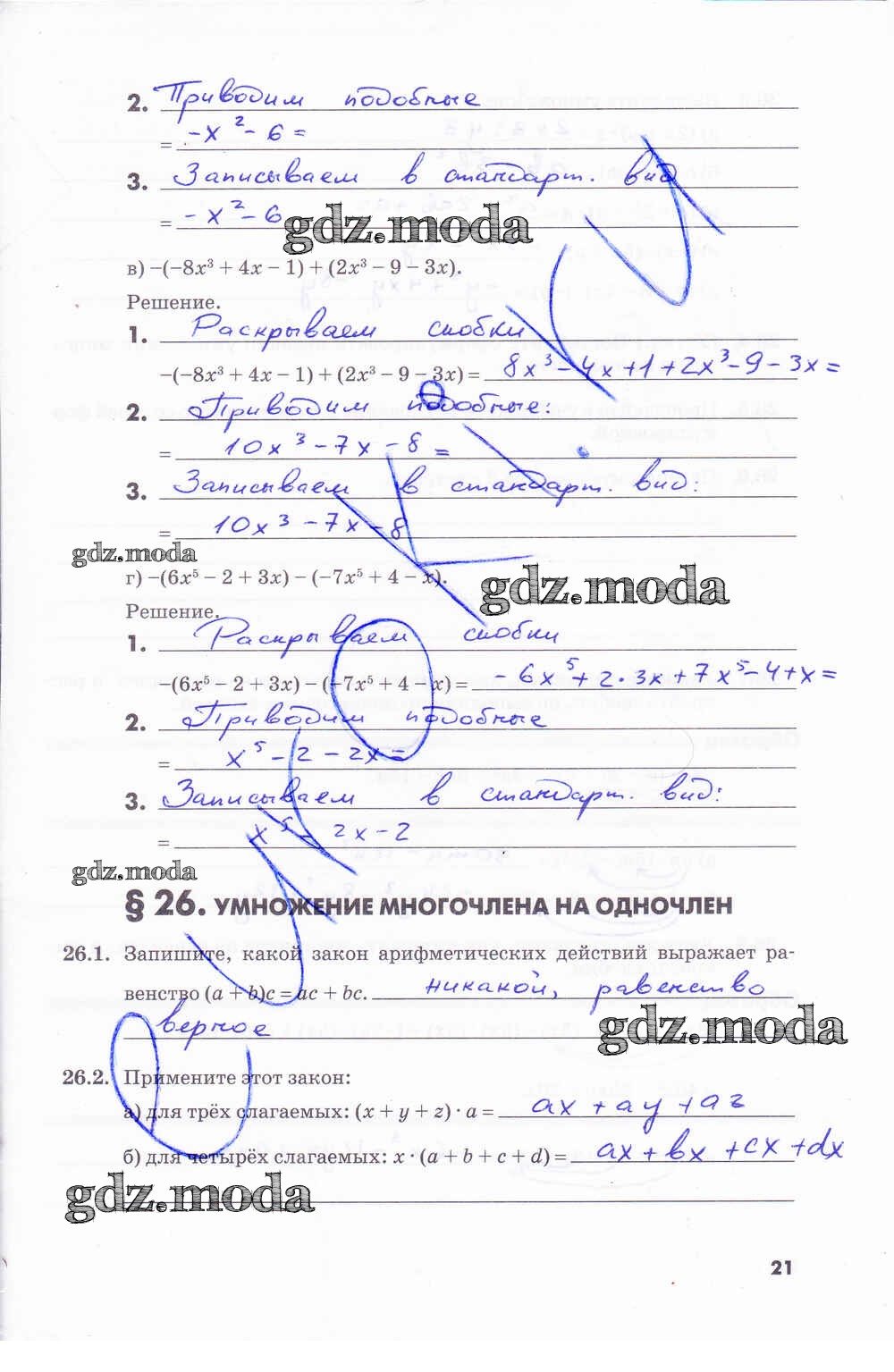 ГДЗ решение к заданию № 21 Алгебра 7 класс рабочая тетрадь Зубарева И.И. Мнемозина 2019 Часть 1, Часть 2 ФГОС бесплатно на гдз.мода!