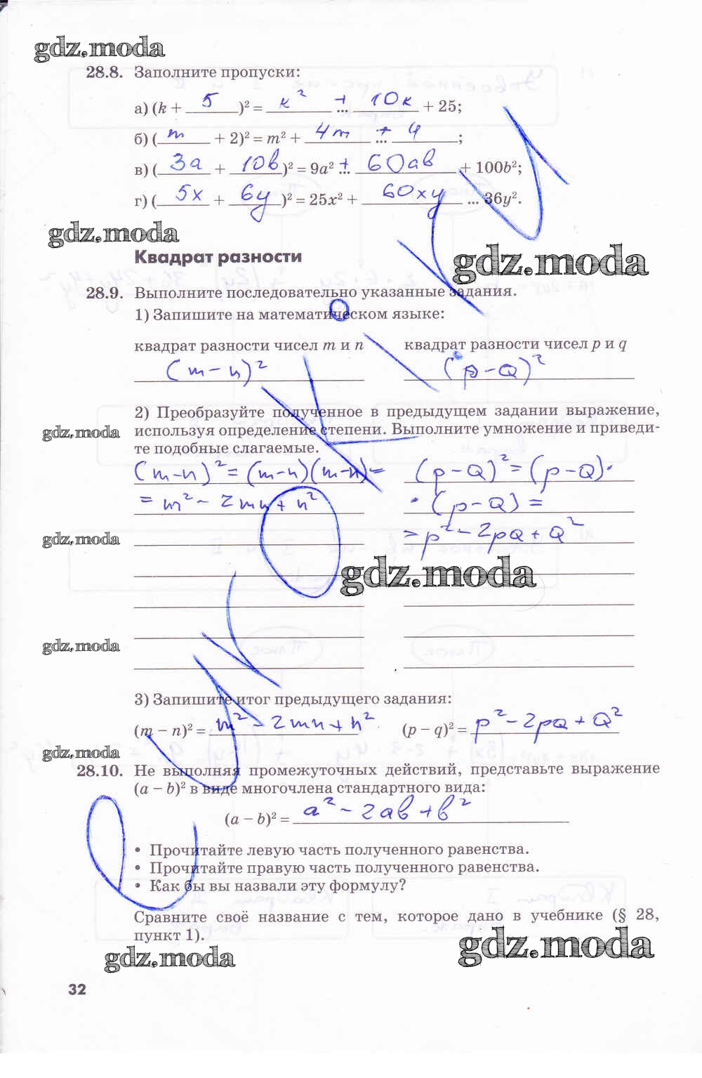 ГДЗ решение к заданию № 32 Алгебра 7 класс рабочая тетрадь Зубарева И.И. Мнемозина 2019 Часть 1, Часть 2 ФГОС бесплатно на гдз.мода!