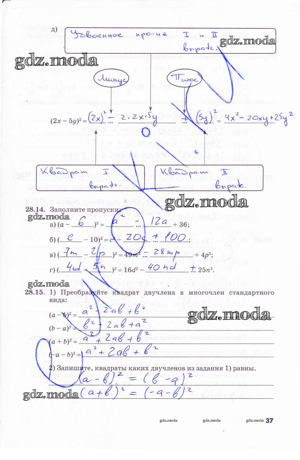 ГДЗ решение к заданию № 37 Алгебра 7 класс рабочая тетрадь Зубарева И.И. Мнемозина 2019 Часть 1, Часть 2 ФГОС бесплатно на гдз.мода!