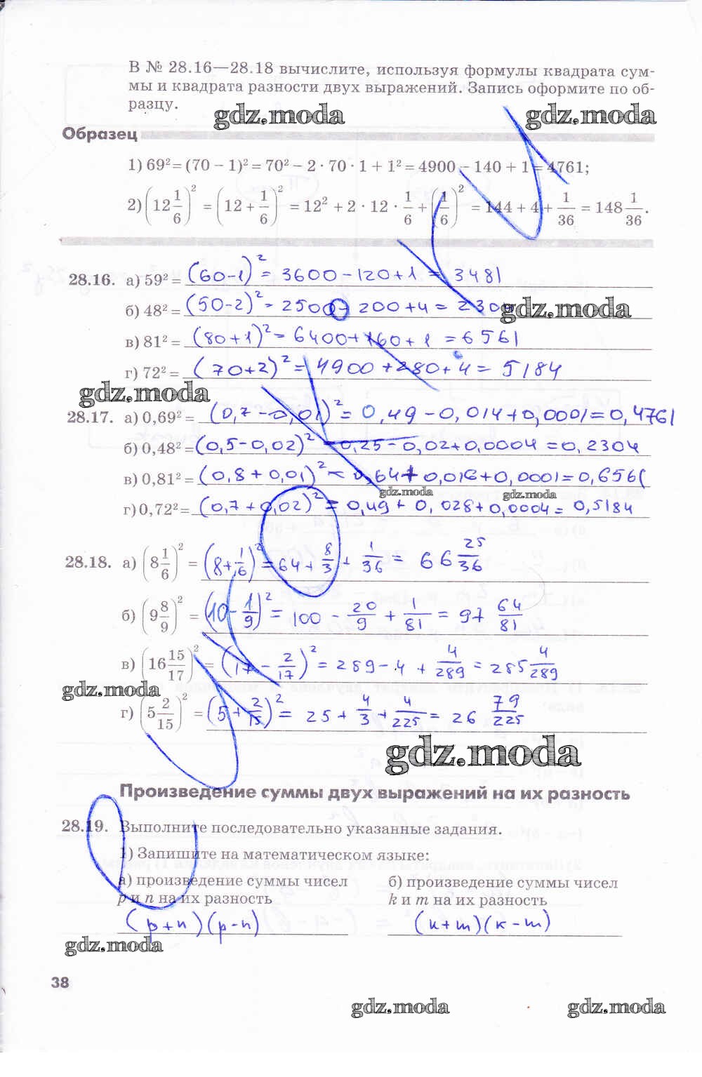 ГДЗ решение к заданию № 38 Алгебра 7 класс рабочая тетрадь Зубарева И.И. Мнемозина 2019 Часть 1, Часть 2 ФГОС бесплатно на гдз.мода!