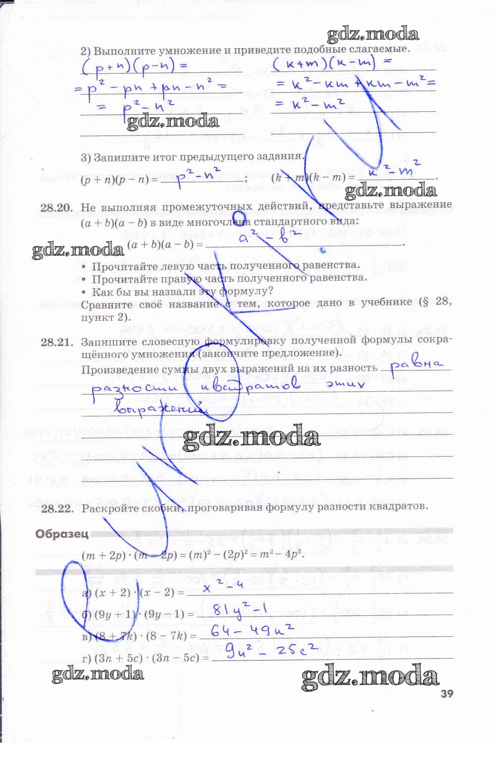 ГДЗ решение к заданию № 39 Алгебра 7 класс рабочая тетрадь Зубарева И.И. Мнемозина 2019 Часть 1, Часть 2 ФГОС бесплатно на гдз.мода!