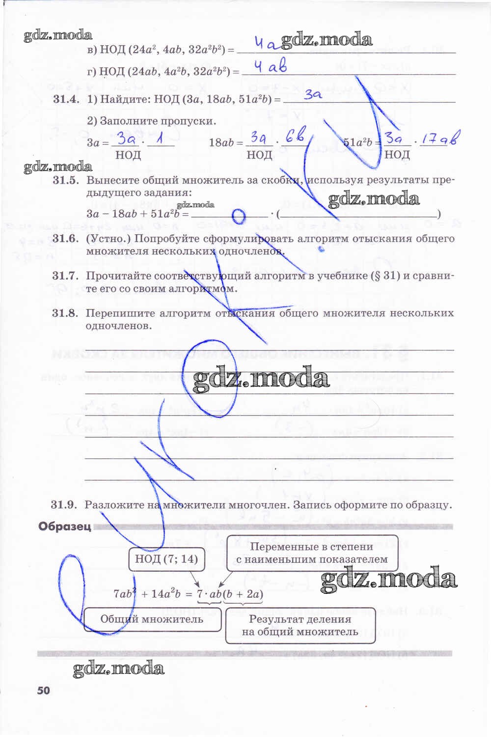 ГДЗ решение к заданию № 50 Алгебра 7 класс рабочая тетрадь Зубарева И.И. Мнемозина 2019 Часть 1, Часть 2 ФГОС бесплатно на гдз.мода!