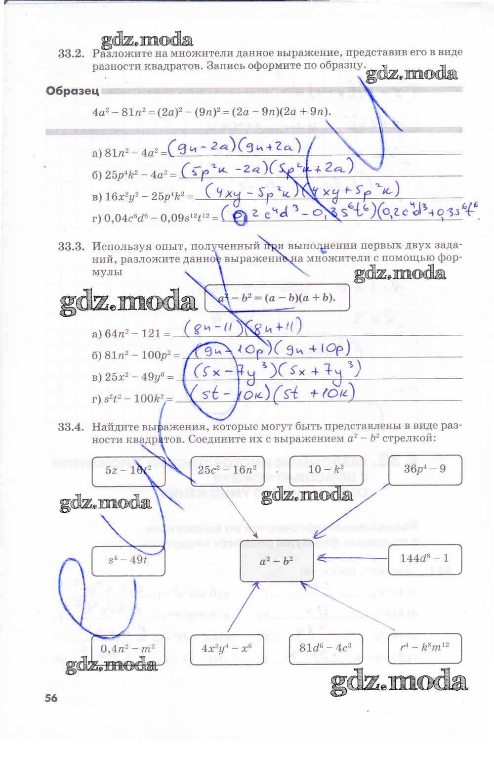 ГДЗ решение к заданию № 56 Алгебра 7 класс рабочая тетрадь Зубарева И.И. Мнемозина 2019 Часть 1, Часть 2 ФГОС бесплатно на гдз.мода!