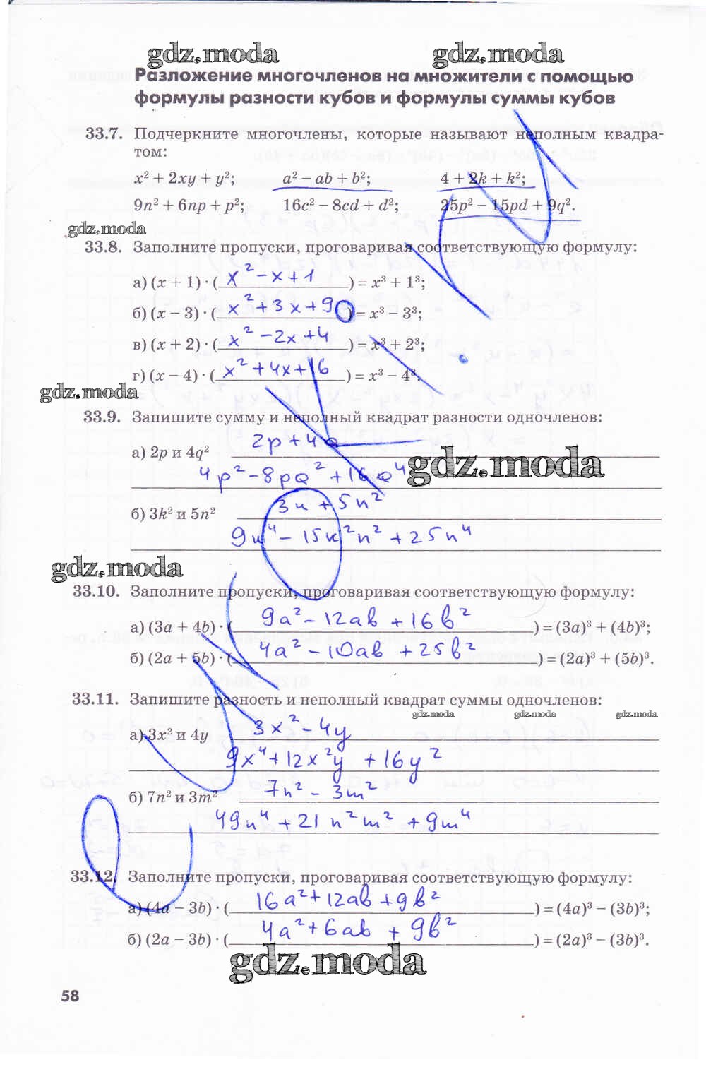 ГДЗ решение к заданию № 58 Алгебра 7 класс рабочая тетрадь Зубарева И.И. Мнемозина 2019 Часть 1, Часть 2 ФГОС бесплатно на гдз.мода!