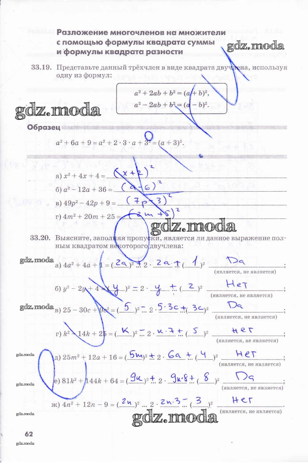 ГДЗ решение к заданию № 62 Алгебра 7 класс рабочая тетрадь Зубарева И.И. Мнемозина 2019 Часть 1, Часть 2 ФГОС бесплатно на гдз.мода!