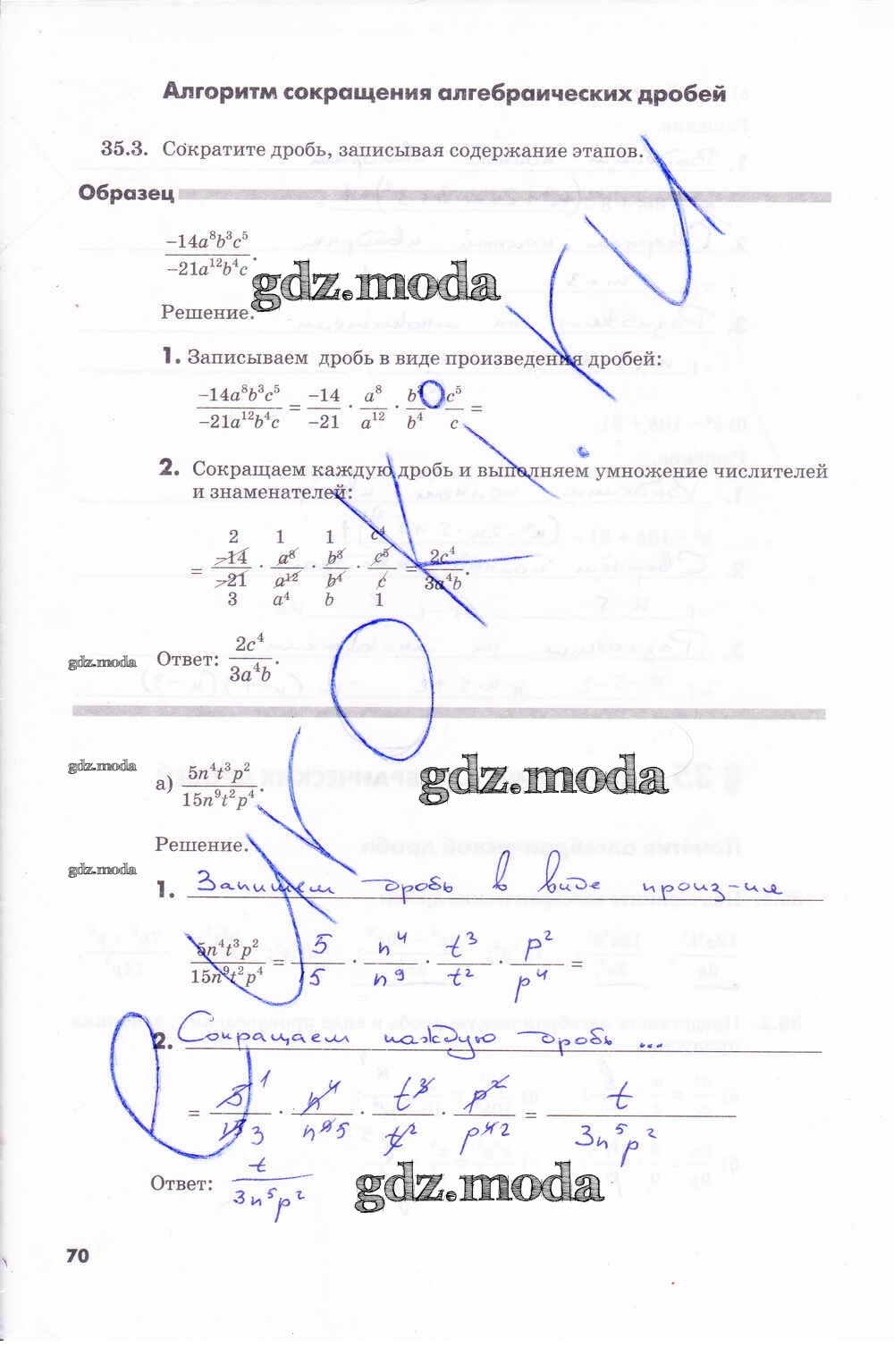 ГДЗ решение к заданию № 70 Алгебра 7 класс рабочая тетрадь Зубарева И.И. Мнемозина 2019 Часть 1, Часть 2 ФГОС бесплатно на гдз.мода!