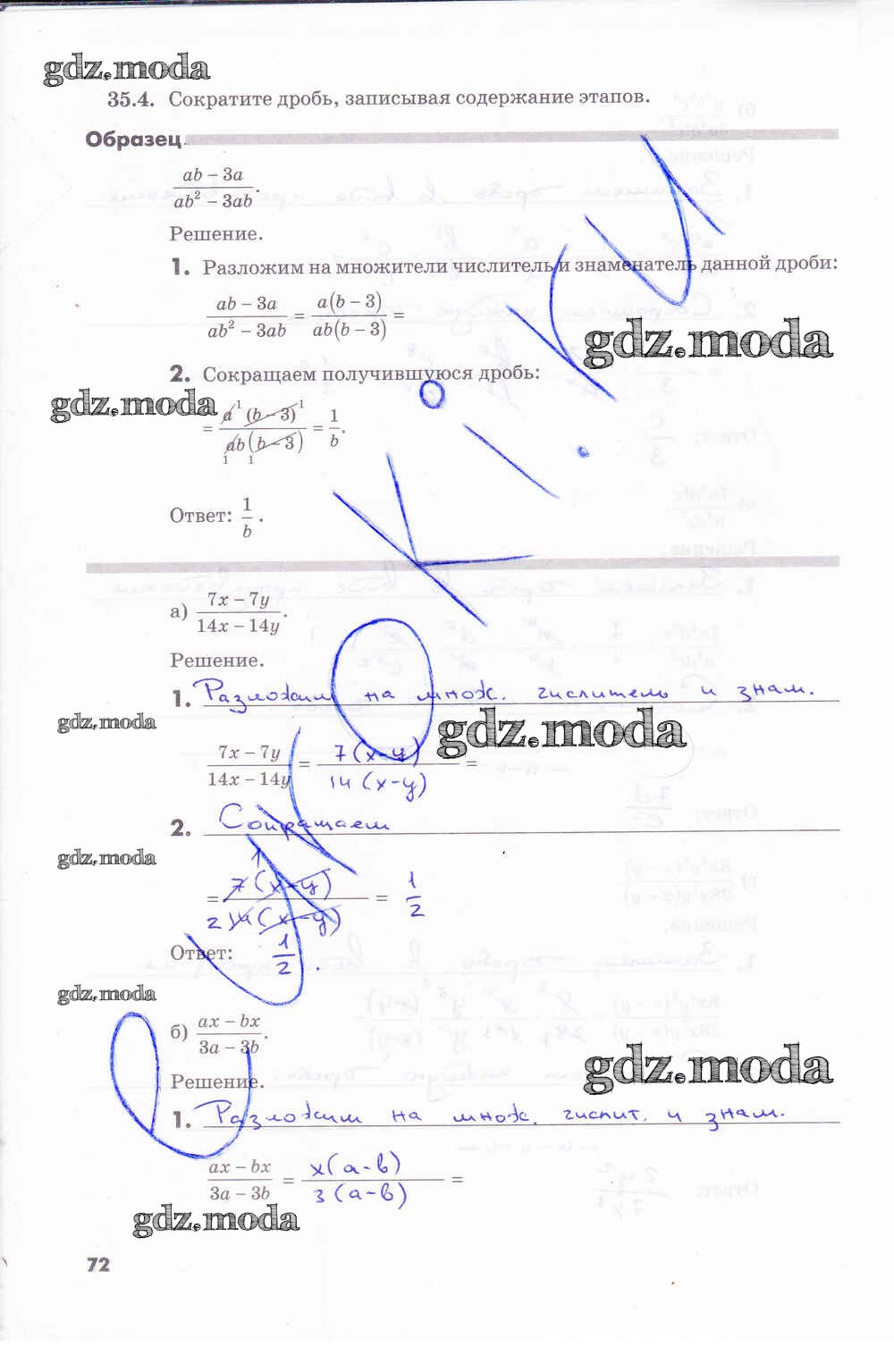 ГДЗ решение к заданию № 72 Алгебра 7 класс рабочая тетрадь Зубарева И.И. Мнемозина 2019 Часть 1, Часть 2 ФГОС бесплатно на гдз.мода!
