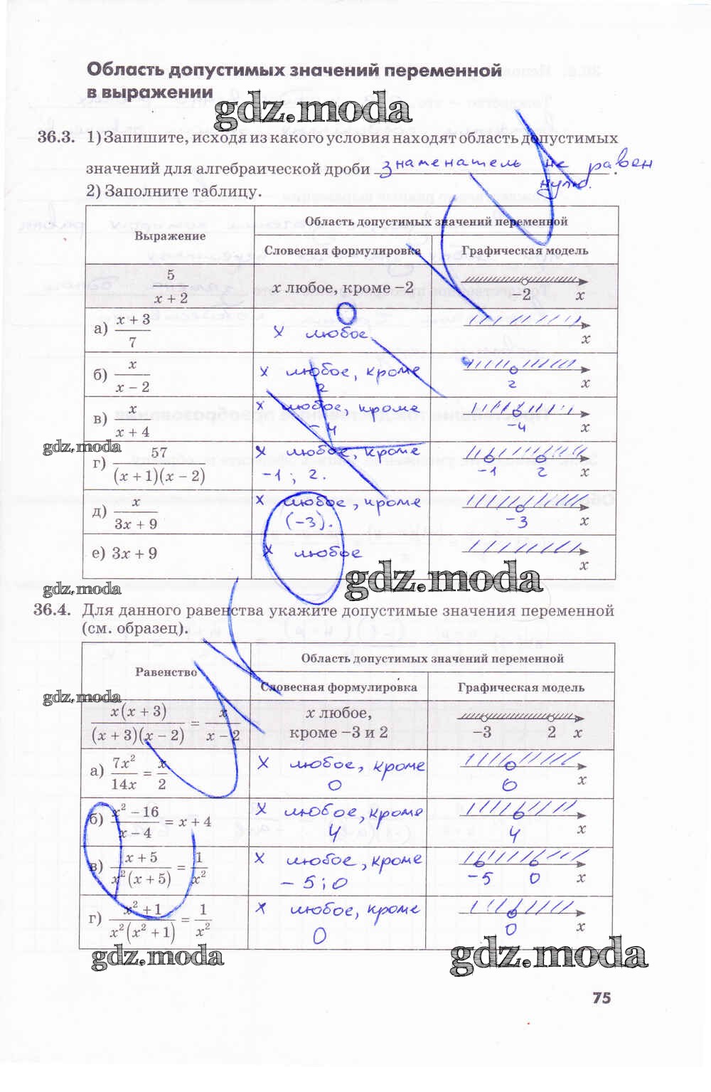 ГДЗ решение к заданию № 75 Алгебра 7 класс рабочая тетрадь Зубарева И.И. Мнемозина 2019 Часть 1, Часть 2 ФГОС бесплатно на гдз.мода!