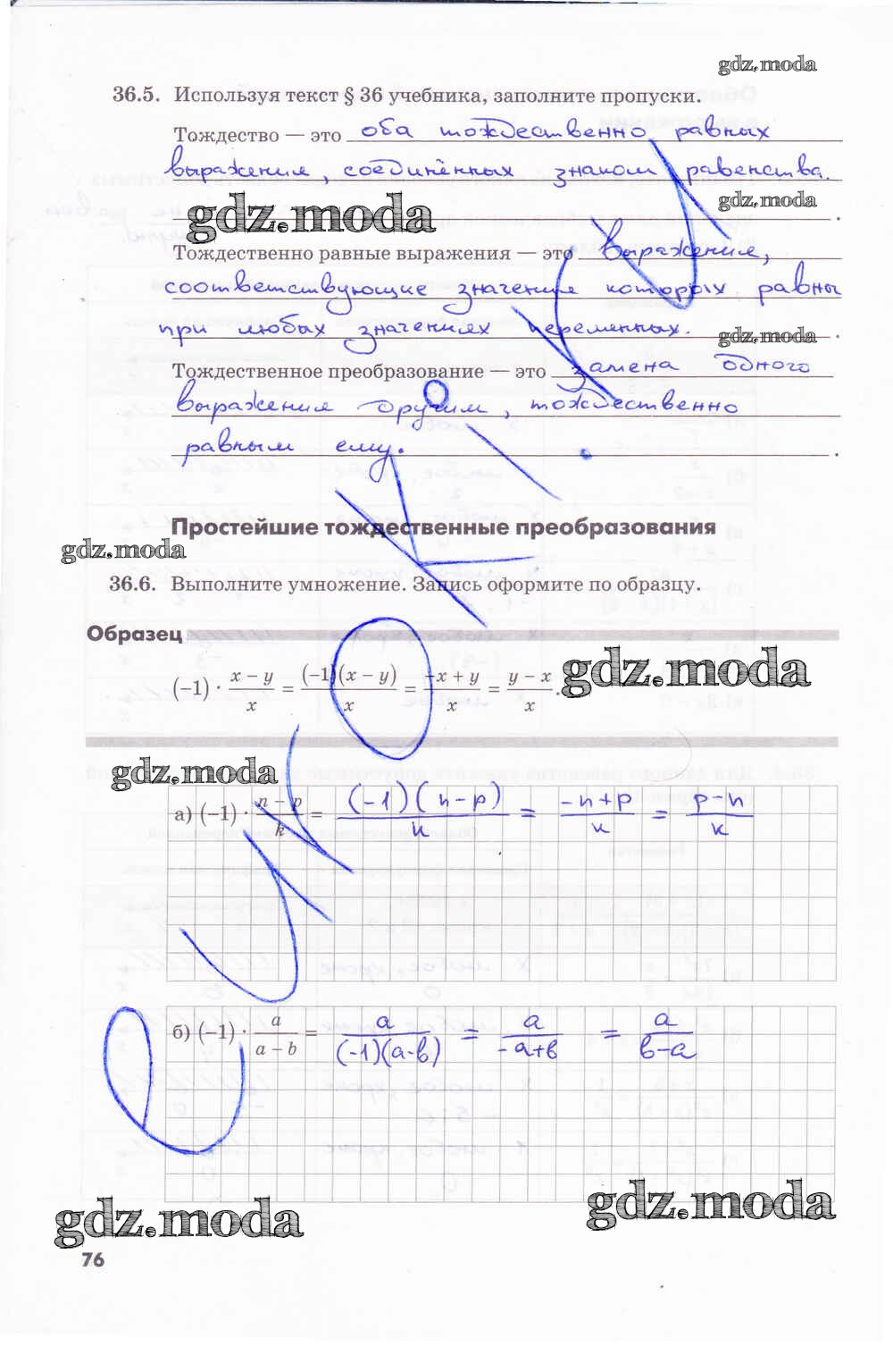 ГДЗ решение к заданию № 76 Алгебра 7 класс рабочая тетрадь Зубарева И.И. Мнемозина 2019 Часть 1, Часть 2 ФГОС бесплатно на гдз.мода!