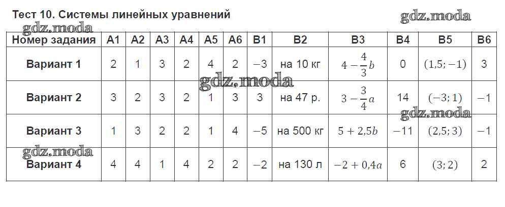 ГДЗ решение к заданию № 10 Алгебра 7 класс тематические тесты Чулков П.В. Просвещение 2017 ФГОС бесплатно на гдз.мода!