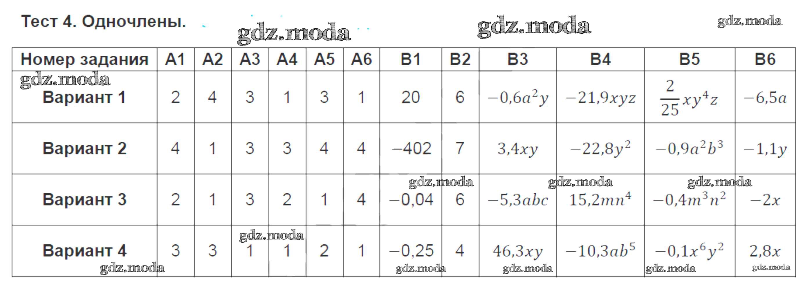 ГДЗ решение к заданию № 4 Алгебра 7 класс тематические тесты Чулков П.В. Просвещение 2017 ФГОС бесплатно на гдз.мода!