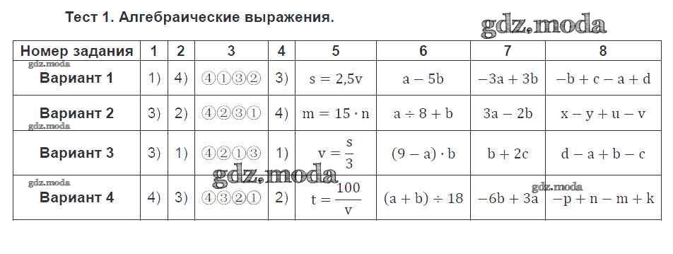 ГДЗ решение к заданию № 1 Алгебра 7 класс тематические тесты Ткачёва М.В. Просвещение 2018 ФГОС бесплатно на гдз.мода!