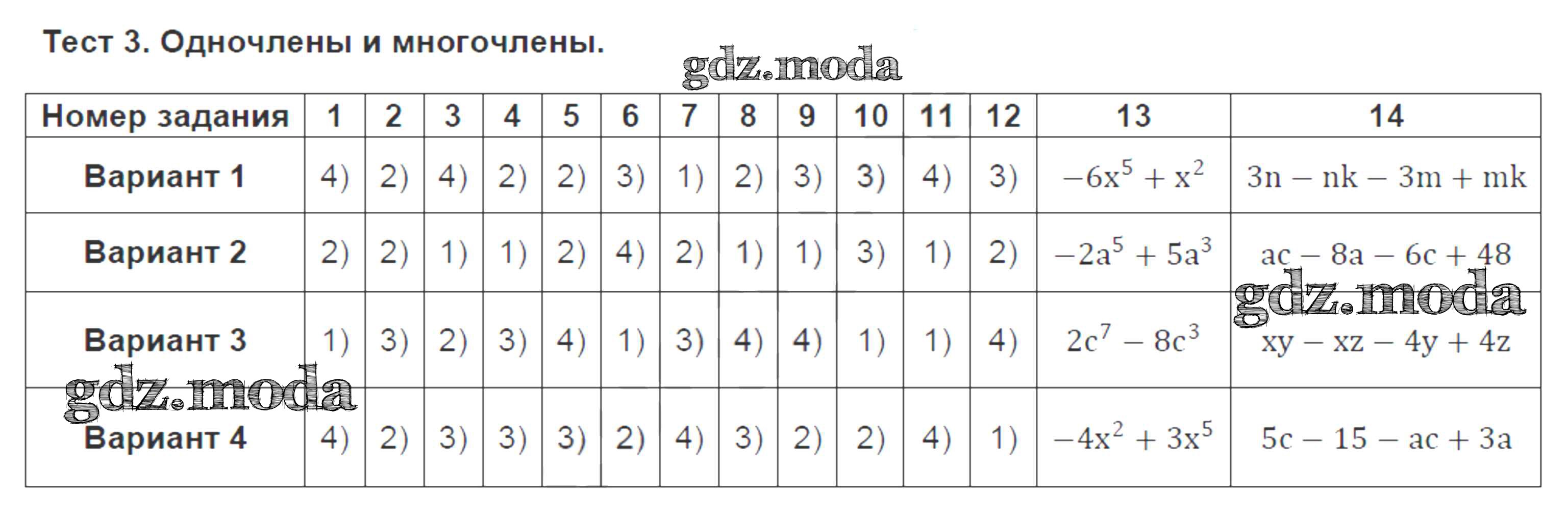 ГДЗ решение к заданию № 3 Алгебра 7 класс тематические тесты Ткачёва М.В. Просвещение 2018 ФГОС бесплатно на гдз.мода!