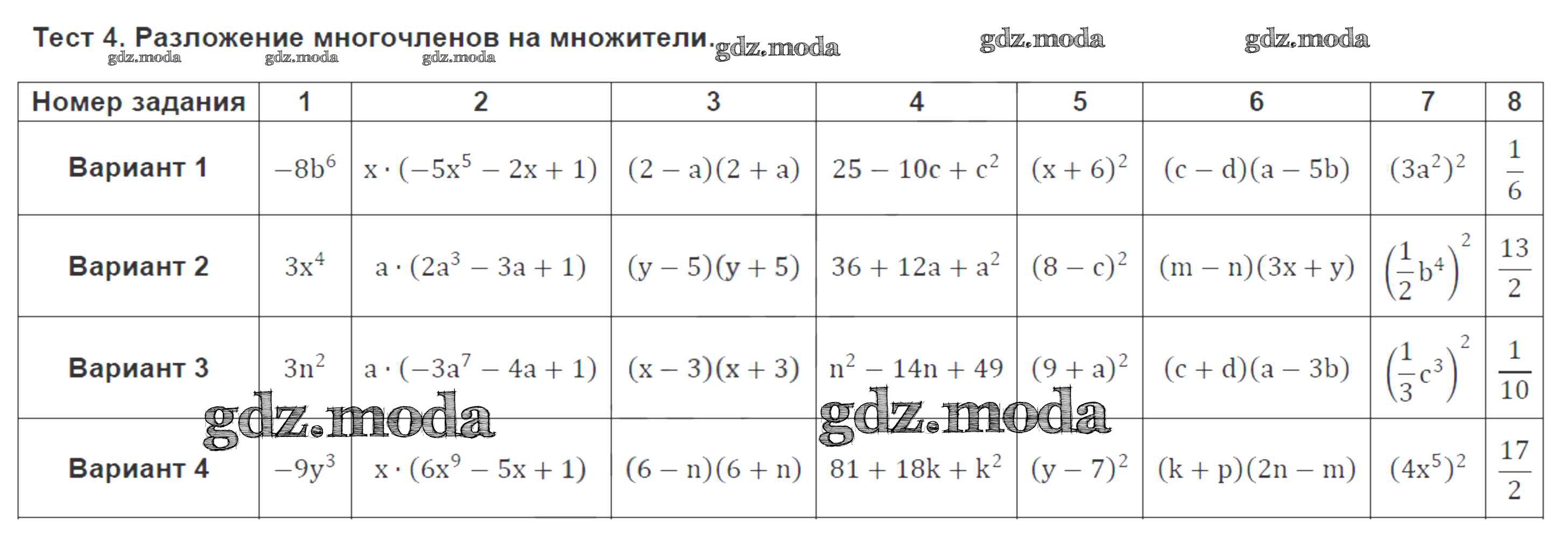 ГДЗ решение к заданию № 4 Алгебра 7 класс тематические тесты Ткачёва М.В. Просвещение 2018 ФГОС бесплатно на гдз.мода!