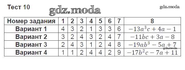 ГДЗ решение к заданию № 10 Алгебра 7 класс тесты Глазков Ю.А. (к учебнику Макарычева Ю.Н.) Экзамен 2011 ФГОС бесплатно на гдз.мода!