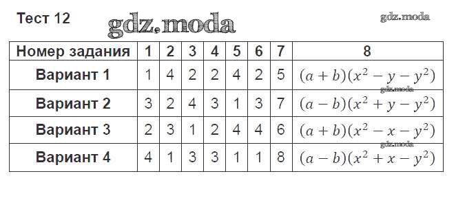 ОТВЕТ на задание № 12 Тесты по Алгебре 7 класс Глазков УМК