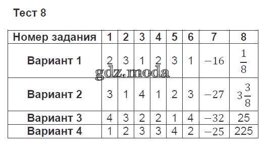 ОТВЕТ на задание № 8 Тесты по Алгебре 7 класс Глазков УМК