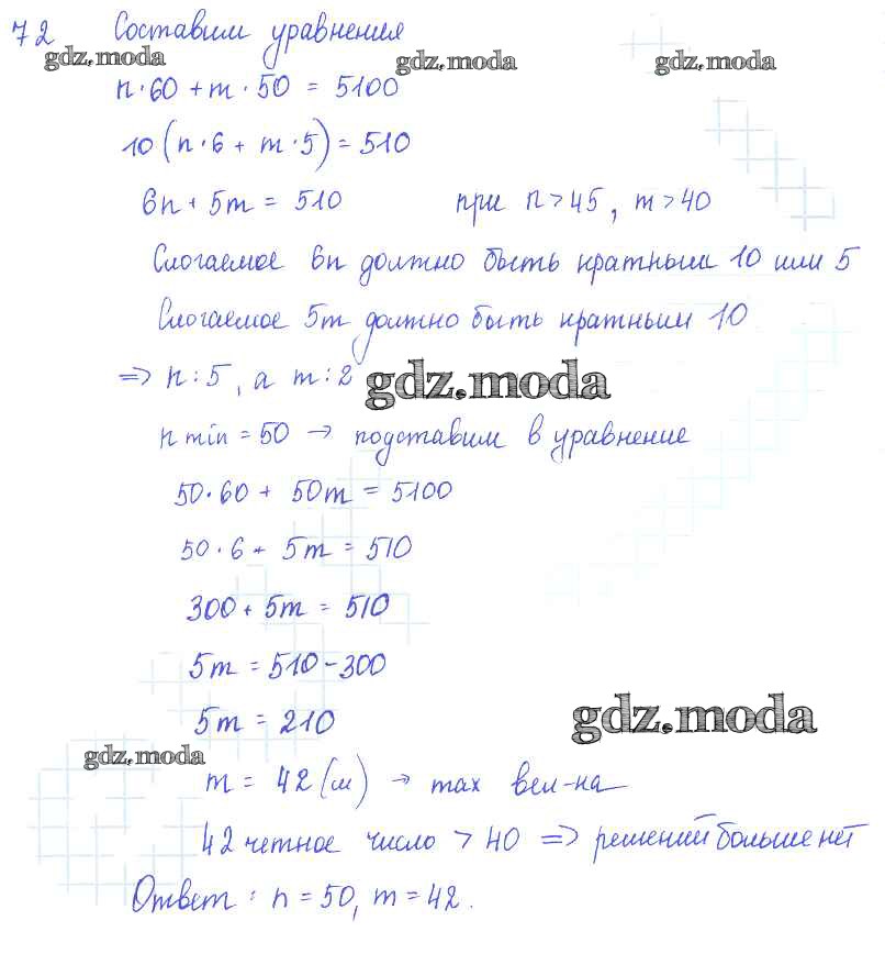 ОТВЕТ на задание № 72 Учебник по Алгебре 7 класс Алимов