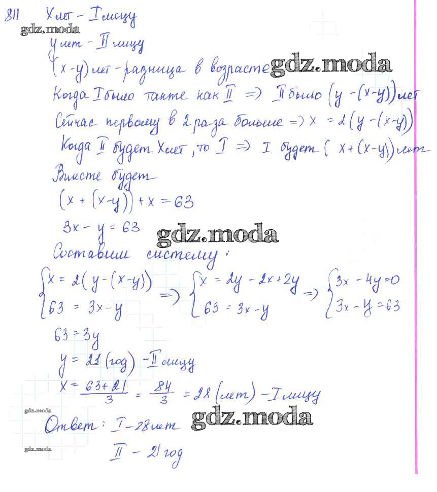 ОТВЕТ на задание № 811 Учебник по Алгебре 7 класс Алимов