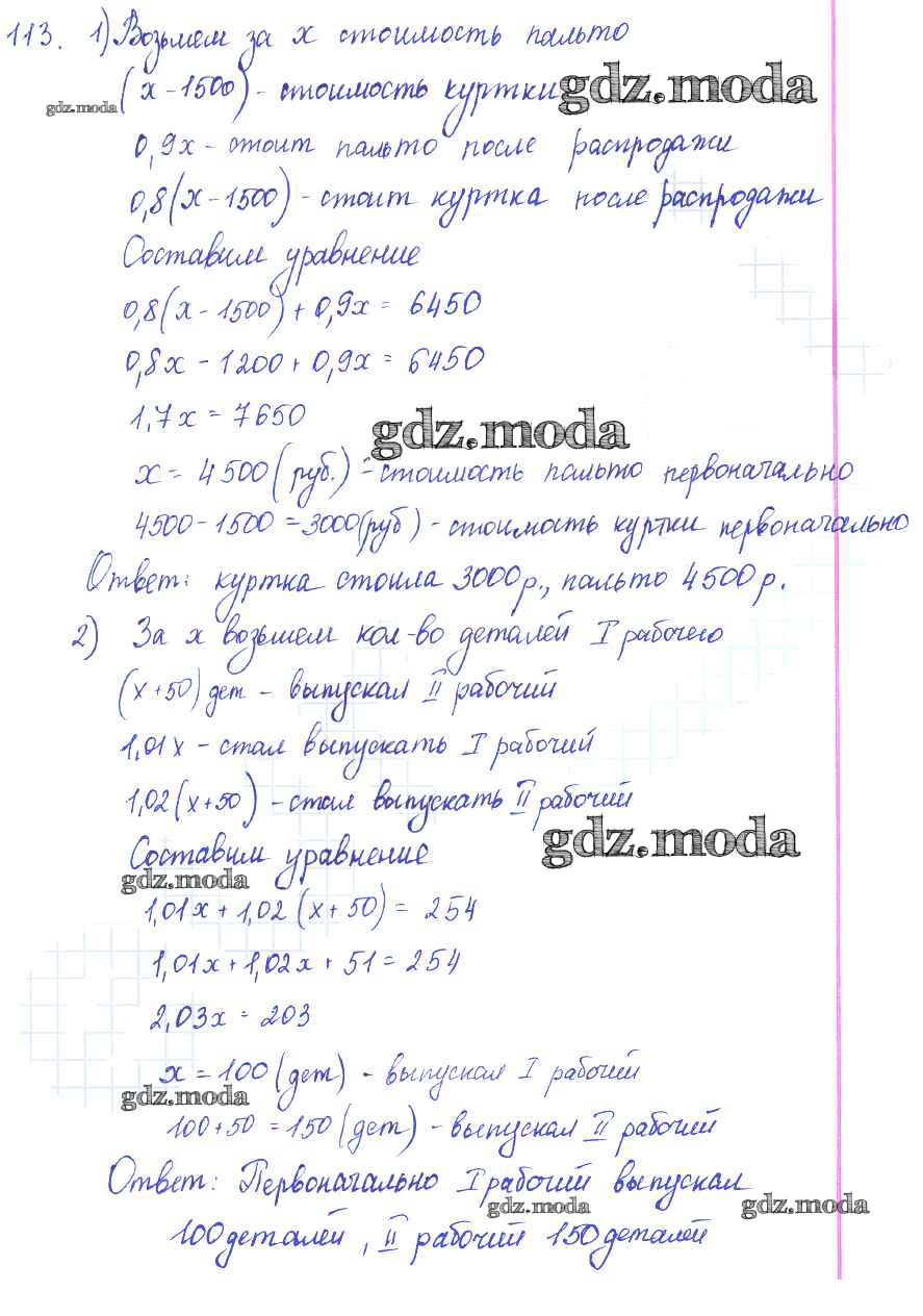 ГДЗ решение к заданию № 113 Алгебра 7 класс Алимов Ш.А. Просвещение 2014 ФГОС бесплатно на гдз.мода!