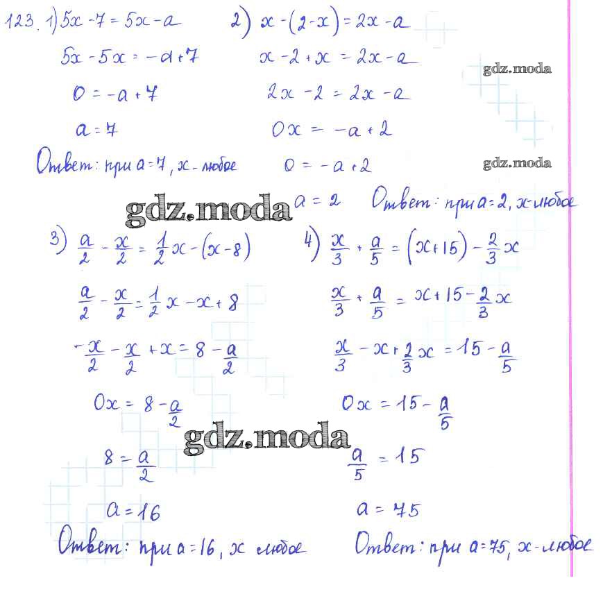ОТВЕТ на задание № 123 Учебник по Алгебре 7 класс Алимов