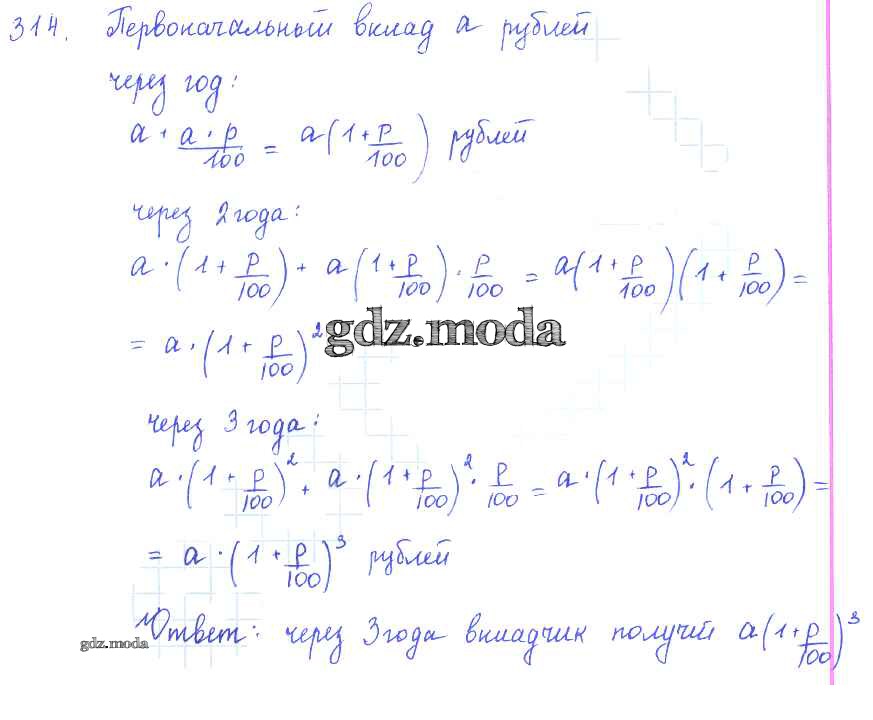ОТВЕТ на задание № 314 Учебник по Алгебре 7 класс Алимов