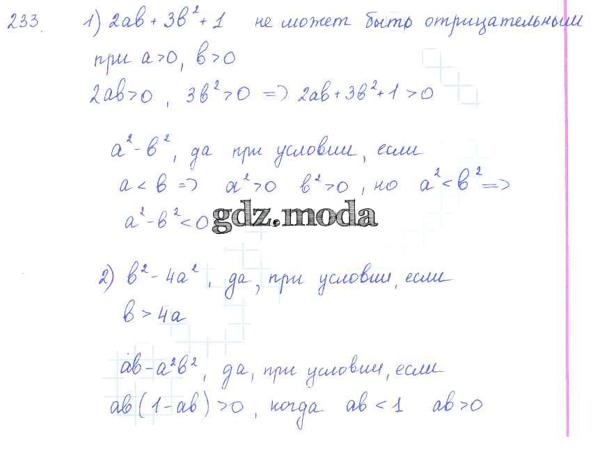 ОТВЕТ на задание № 233 Учебник по Алгебре 7 класс Алимов