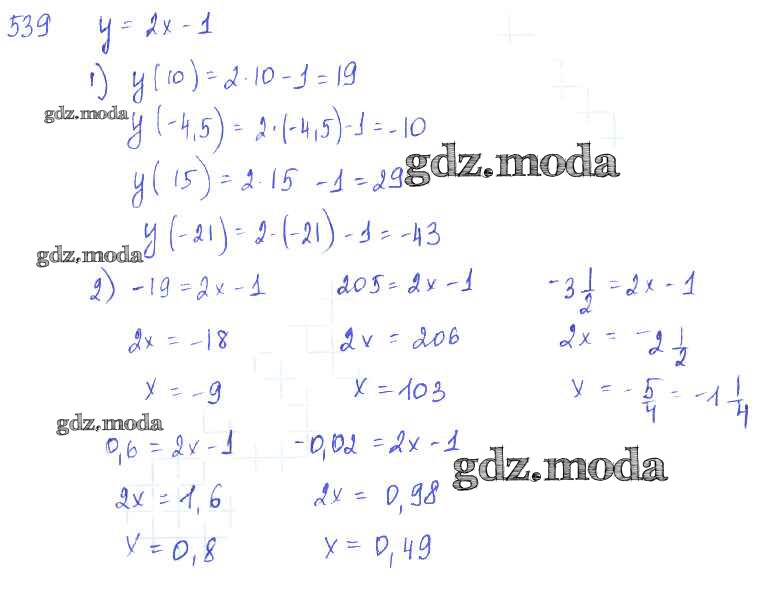 ГДЗ решение к заданию № 539 Алгебра 7 класс Алимов Ш.А. Просвещение 2014 ФГОС бесплатно на гдз.мода!