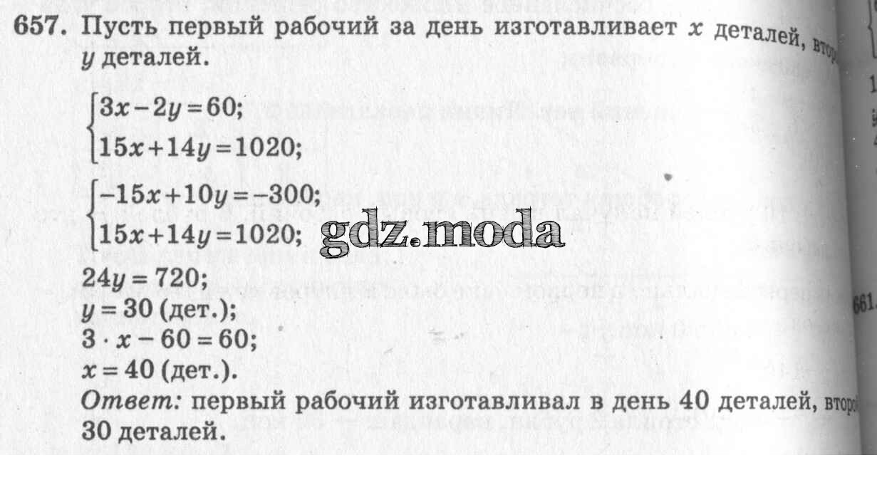ОТВЕТ на задание № 657 Учебник по Алгебре 7 класс Алимов